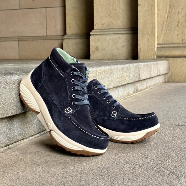 クラシカルなイメージのモカシンデザインは、性別を問わず幅広い年代の方に人気があります。短靴より少しだけ丈の長いショートブーツは足先はゆったり、足首はフィットし、安定感のある履き心地です。スエードを使用しているので、足馴染みが良いのもポイント。